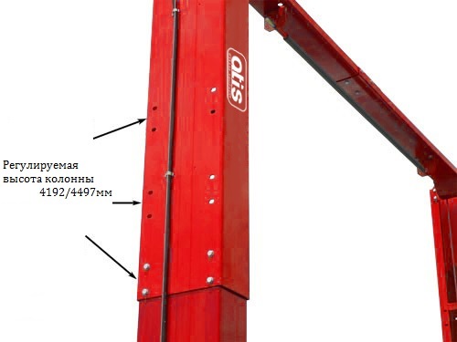 Механическое управление стопорами на одной колонне Комплект телескопических удлинителей Позволяет обслуживать как короткобазные автомобили, так и длиннобазные.