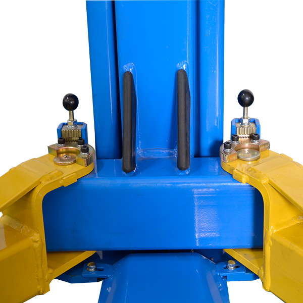 На внутренней части каждой стойки установлены резиновые пластины в местах, где двери автомобиля могут контактировать с металлической конструкцией подъемника, позволяет обеспечить надежную защиту дверей автомобиля, установленного на двухстоечном подъемнике, от возможного повреждения при их открывании.
