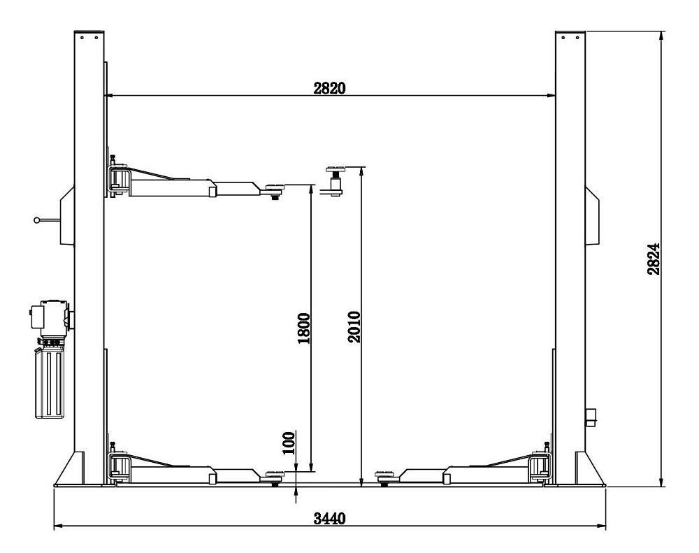 VERSA 2A KraftWell Подъемник двухстоечный электрогидравлический с управлением стопорами на одной колонне, асимметричный, двухцилиндровый, г/п 4000 кг., 2,2 кВт, высота подъема 2010 мм., расстояние между стойками 2820 мм., с нижней синхронизацией.