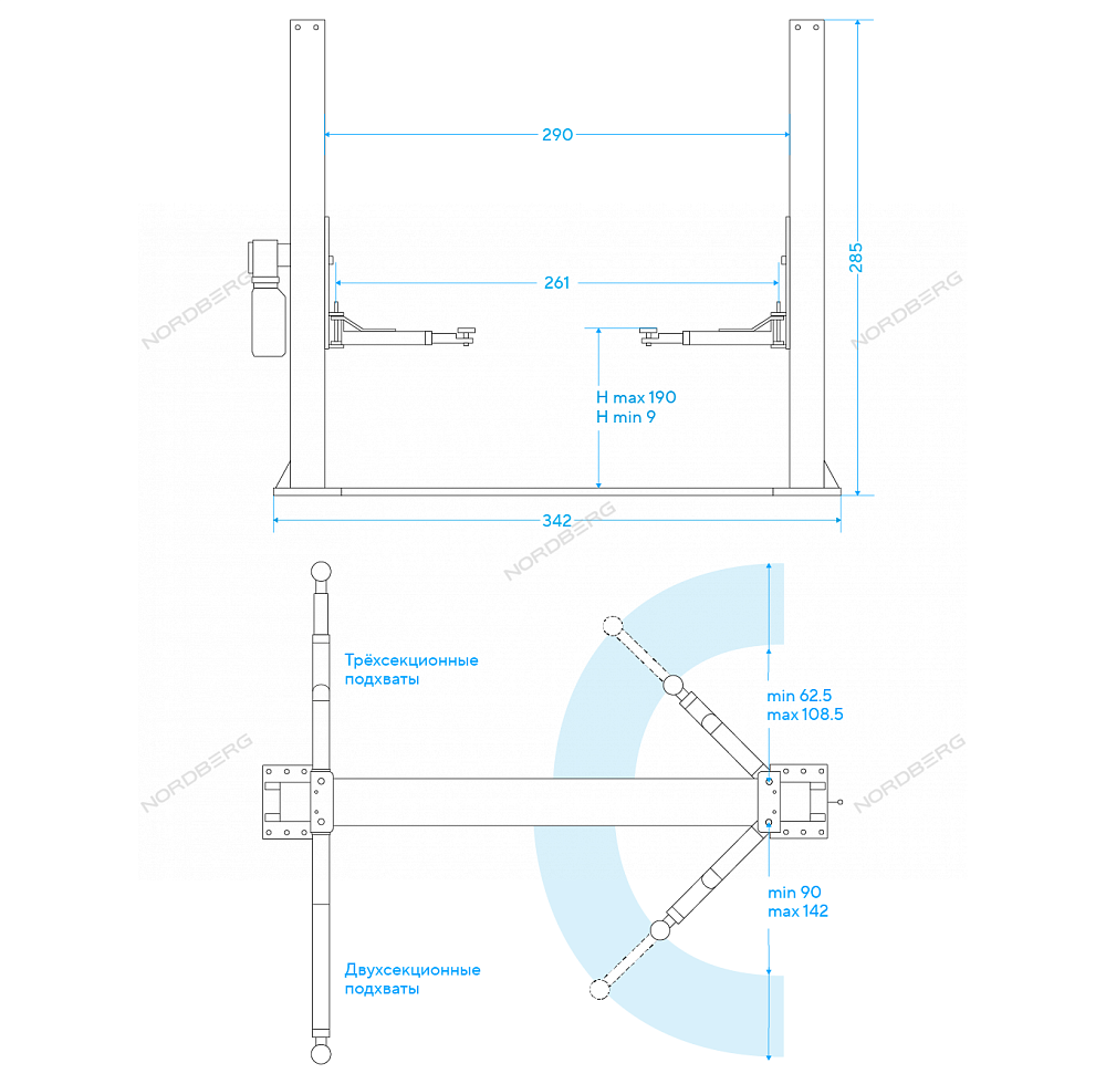 Подъемник двухстоечный 4 т, 220 В, серый NORDBERG N4120B-4G_3+2_220 купить в Перми цена ✅ - Все для СТО