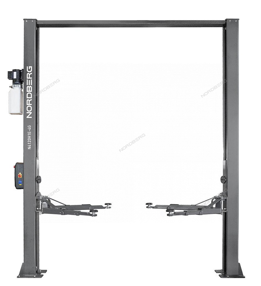 Подъемник двухстоечный 4 т, верхняя синхронизация, с электростопорами, H=3,6 м, 380 В, серый NORDBERG N4120HE-4G_3+2_380