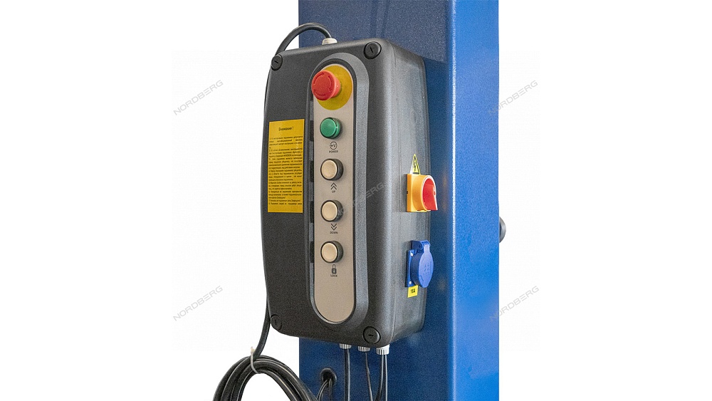 Подъемник двухстоечный 4 т, верхняя синхронизация, с электростопорами, H=4 м, 380 В, синий NORDBERG N4120H1E-4B_3+2_380