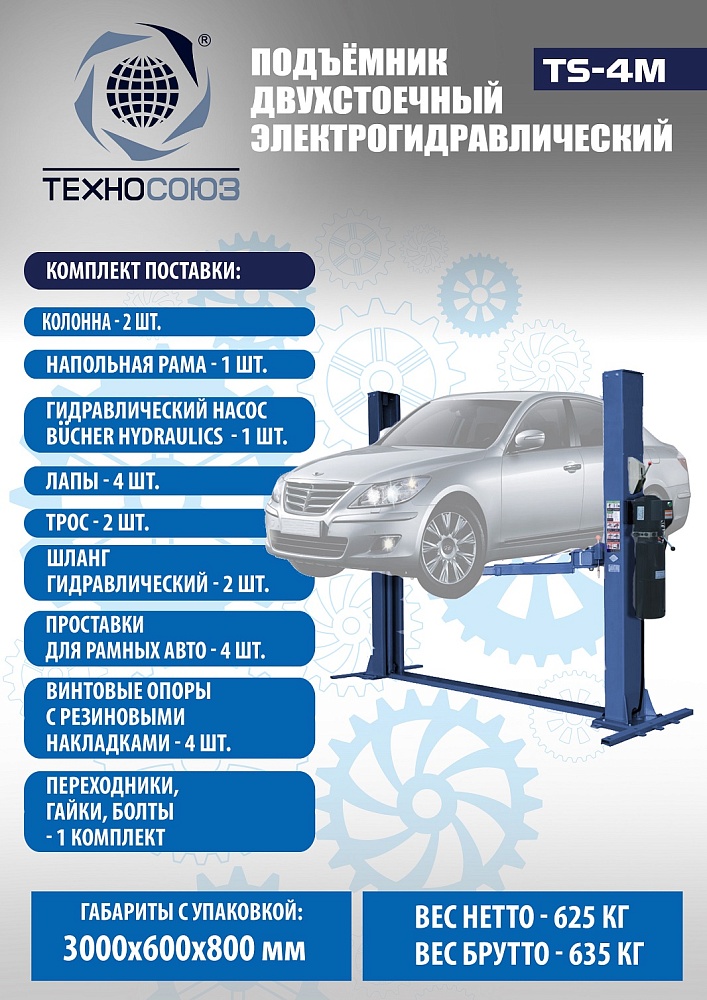 TS-4M Подъемник 2-хст. г/п 4 т с напольной рамой (220 V ТВ) купить в Перми цена ✅ - Все для СТО