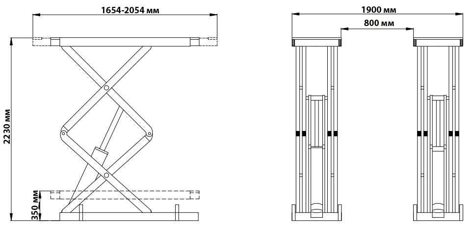 Два синхронизированных цилиндра обеспечивают плавный подъем обеих платформ.