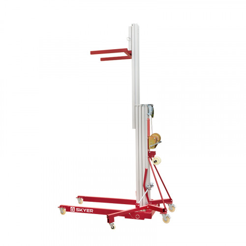 Телескопический подъемник SLA-10 представляет собой прочное, устойчивое и простое в использовании оборудование для подъема материалов. Складная мачта выполнена из легкого и долговечного алюминиевого сплава. Подъем груза осуществляется с помощью ручной лебедки. Для сборки и настройки материалоподъемника не требуются инструменты, с этим запросто справится один человек. Компактные размеры, малый вес и складные опоры упрощают хранение и транспортировку. Грузоподъемность модели достигает 400 кг.