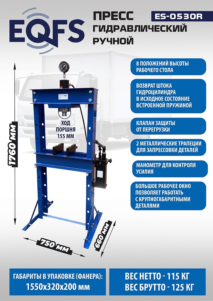 ES-0530R Пресс гидравлический ручной, 30 тонн купить в Перми цена ✅ - Все для СТО