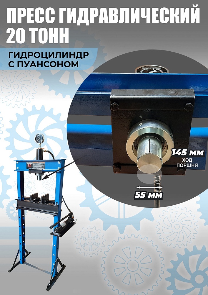 ·         Пресс укомплектован гидравлическим ручным насосом с максимальным  усилием 20т.