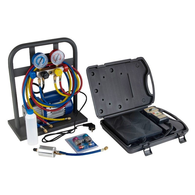 • Вакуумный насос (60 л/мин) с глубиной вакуума до 60 микрон - эффективно удаляет воздух и влагу из системы перед заправкой.