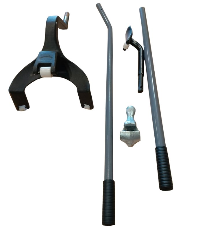 Устройство предназначено для монтажа/демонтажа грузовых шин. Вставляется между диском и шиной. За счёт изогнутой формы наконечника производится демонтаж сначала одного борта шины, затем второго путём воздействия на рычаг. Для шин 19,5-22,5 дюйма.