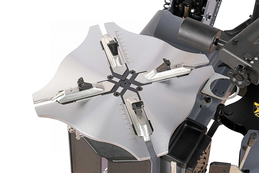 - Рабочий стол позволяет надежно фиксировать диски с максимальным диаметром до 28" при зажиме изнутри и 26" при зажиме снаружи