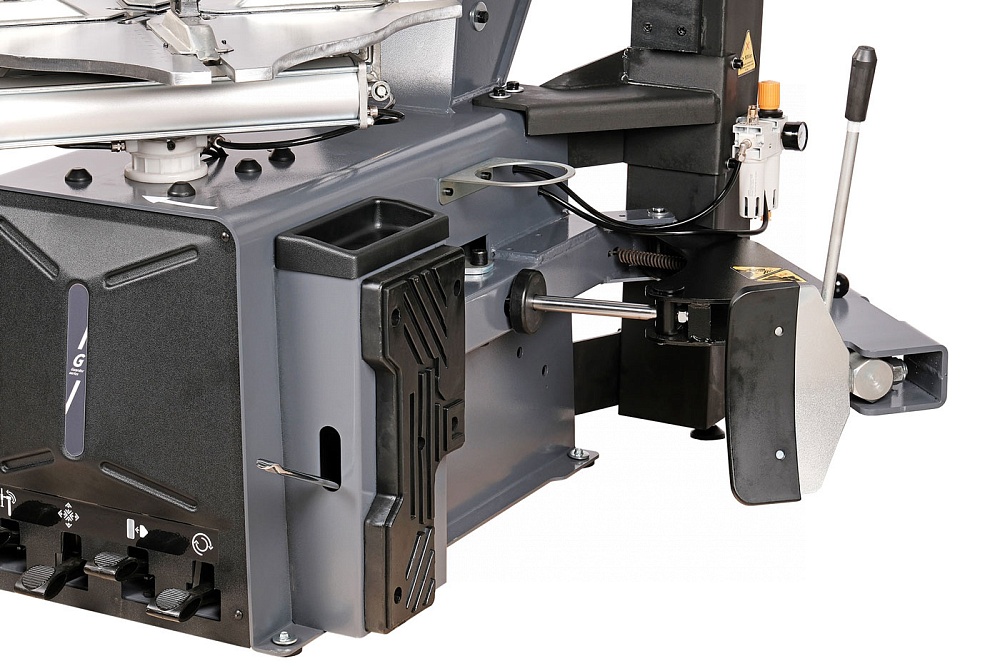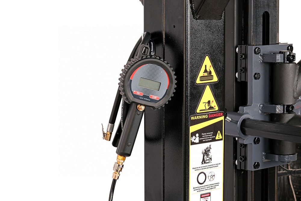 Помогает быстро проводить работы по демонтажу и монтажу автомобильной шины с диска и на диск, а также для накачивания большинства типов шин.