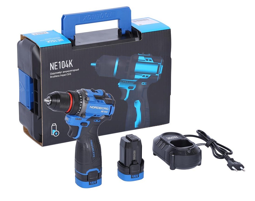 Шуруповерт аккумуляторный макс.диам. сверла 10 мм, 16 В, 60 Нм с 2 аккумуляторами и зарядным уст-вом NORDBERG NE104K купить в Перми цена ✅ - Все для СТО