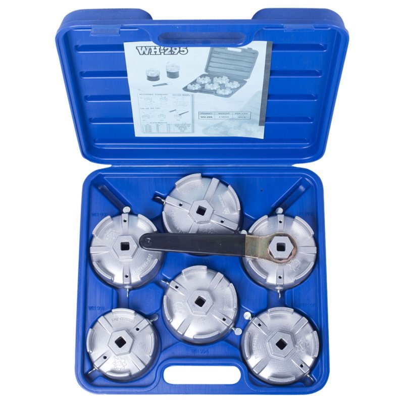 Набор съёмников масляных фильтров, 7 предметов МАСТАК 103-40007С предназначен для снятия или установки масляных фильтров двигателей большегрузных автомобилей. Материал: алюминий.