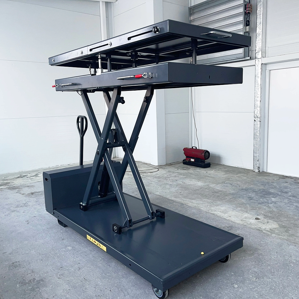 - Электрогидравлический подъемник предназначен для технического обслуживания аккумуляторов и двигателей электромобилей.