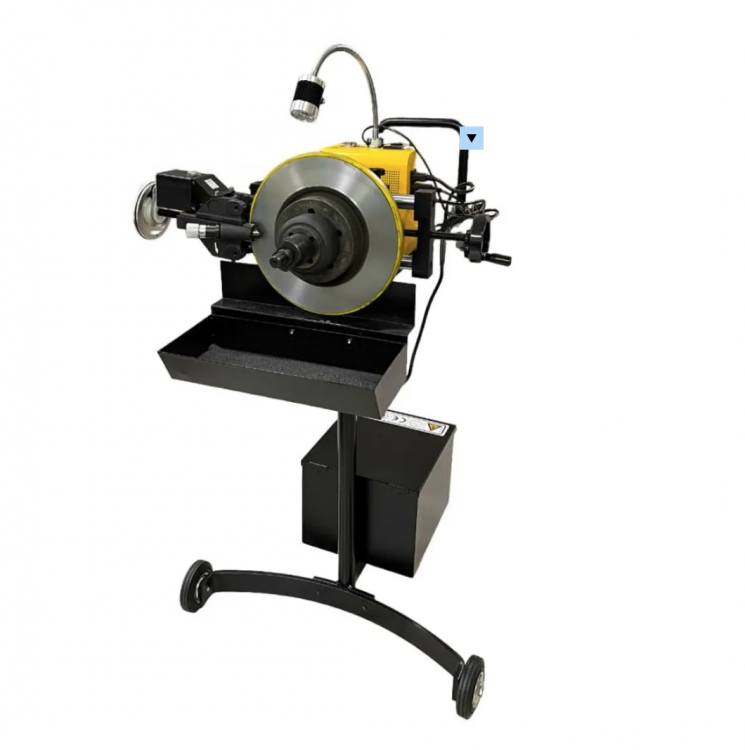 Станок для обтачивания тормозных дисков, установленных на автомобиле. Восстанавливает неровную поверхность изношенных тормозных дисков с минимальной потерей толщины, не снимая их с автомобиля.