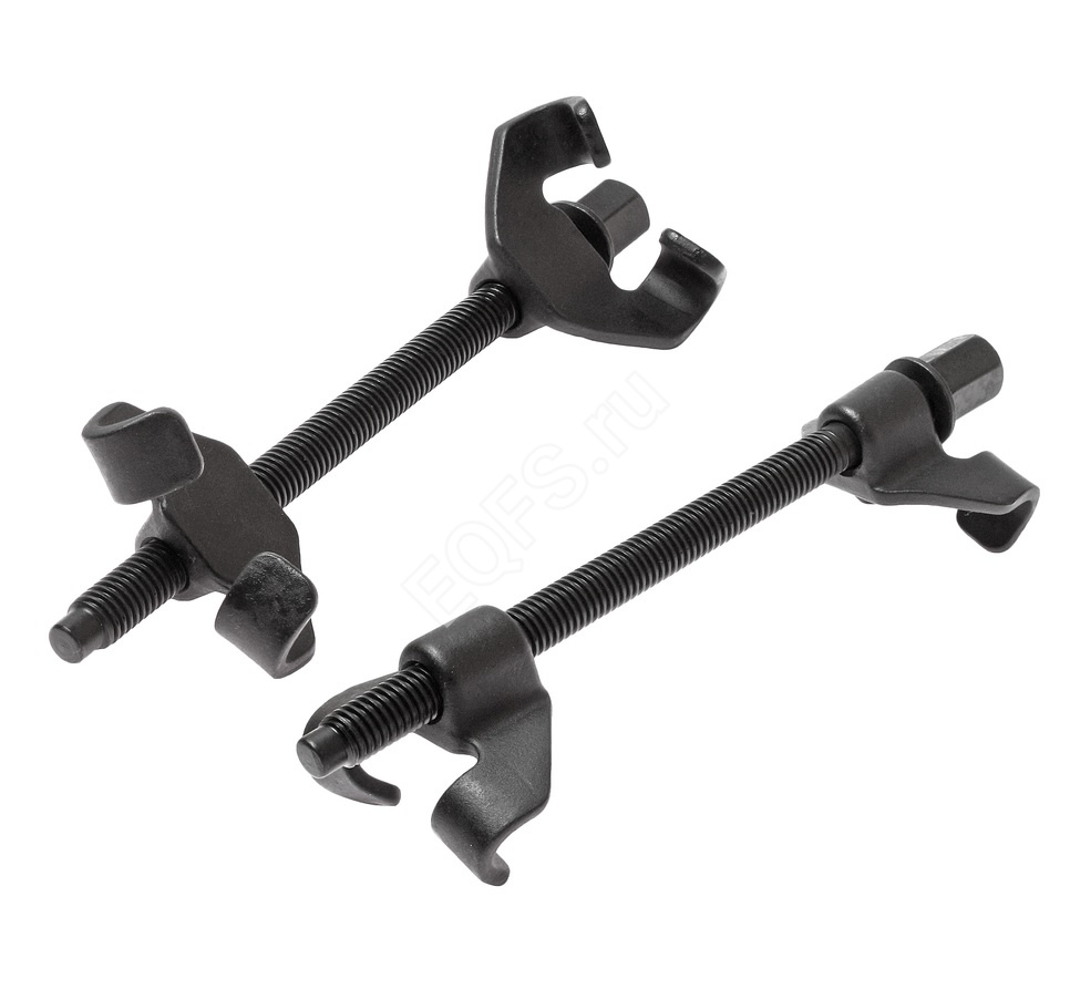 Стяжки предназначены для сжатия при установке и демонтаже всех типов пружин. Двойные захваты выполнены из закаленной хром-ванадиевой стали. Рабочая длина стягивающих винтов - 380 мм. Комплектация включает 2 стяжки.
