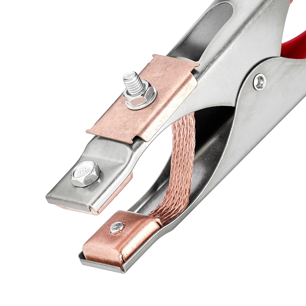Клемма заземления КЗ-53 используется для соединения заземления и сварочного кабеля. Максимальный сварочный ток – 500 А. Струбцина обеспечит плотный контакт в месте подключения.