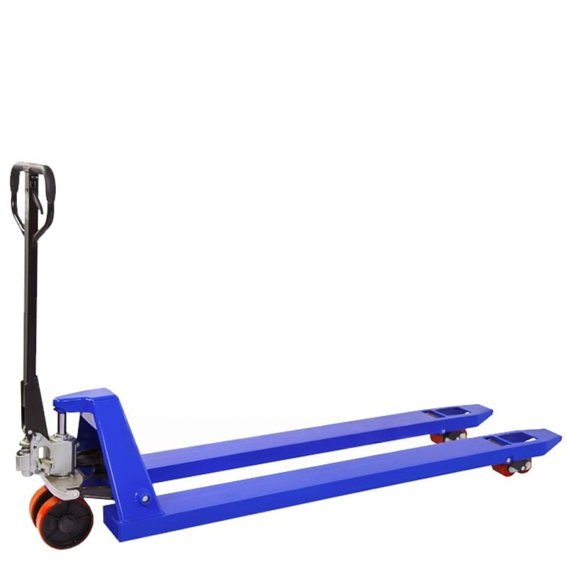 Особенность модели удлиненные вилы – длина 1800 мм вместо стандартных 1150 мм. Подходит для достаточно интенсивной работы и перемещения грузов весом не более 2500 килограмм.