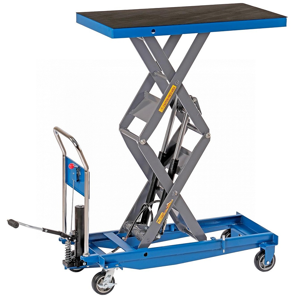 Платформенная тележка с подъёмным столом с ножным подъёмом совмещают в себе функции стационарных подъёмных столов и платформенных тележек: позволяют не только приподнимать грузы, но и перемещать их на расстояния. Тележки с подъёмным столом с ручным подъёмом мобильны, эффективны и надёжны.