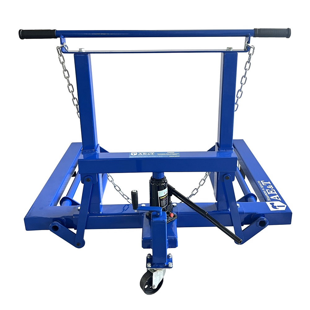 Тележка для перевозки T08068 предназначена для облегчения процесса перемещения грузовых колес по рабочему пространству автомастерской или станции технического обслуживания. Она изготовлена из высокопрочной стали и оснащена надежной гидравлической системой с ручным приводом для подъема груза в диапазоне от 60 мм до 275 мм. Грузоподъемность составляет 680 кг.