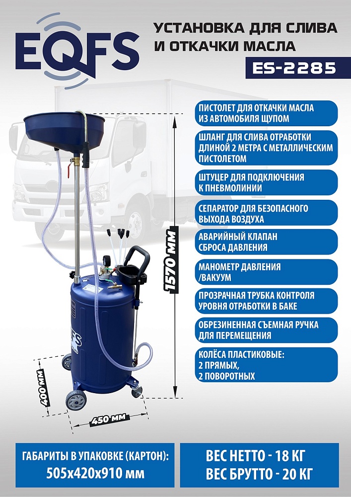 ES-2285 Установка для слива отработанного масла купить в Перми цена ✅ - Все для СТО
